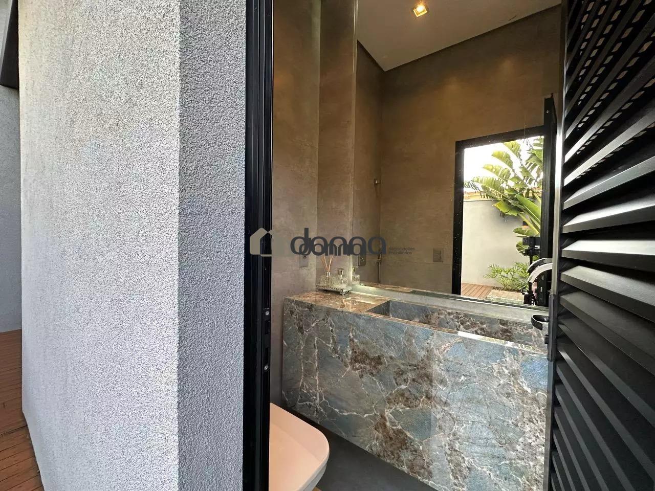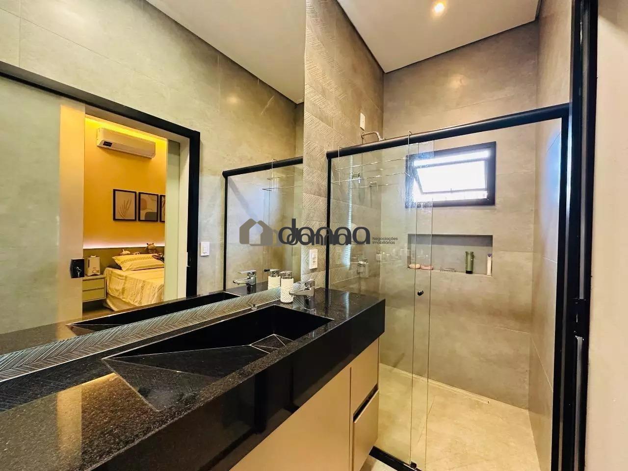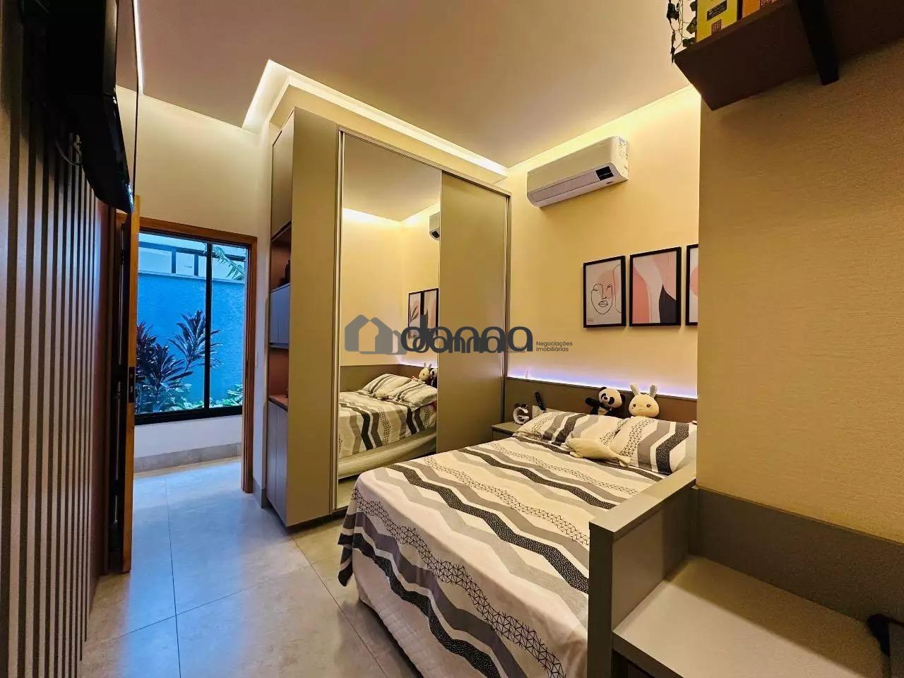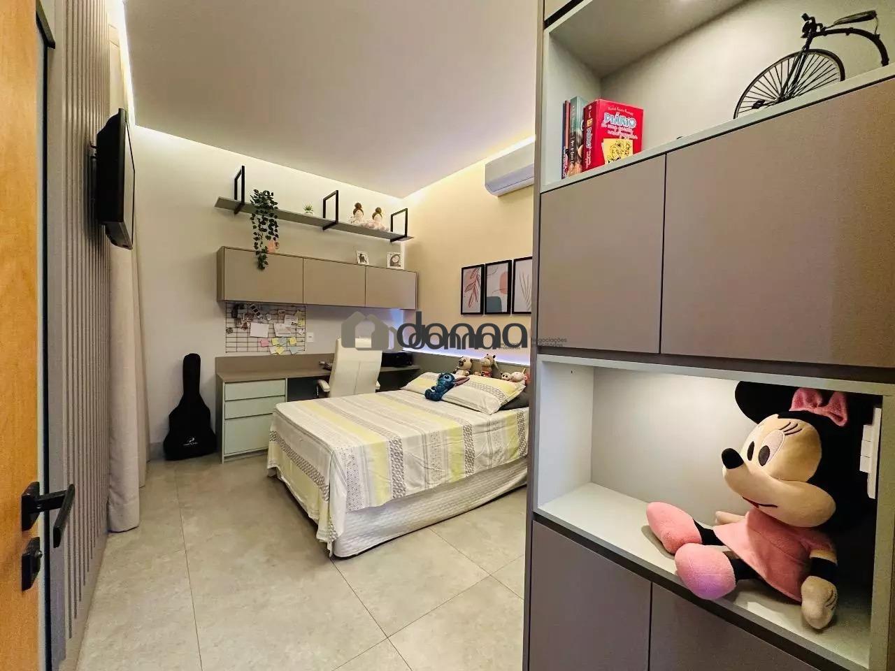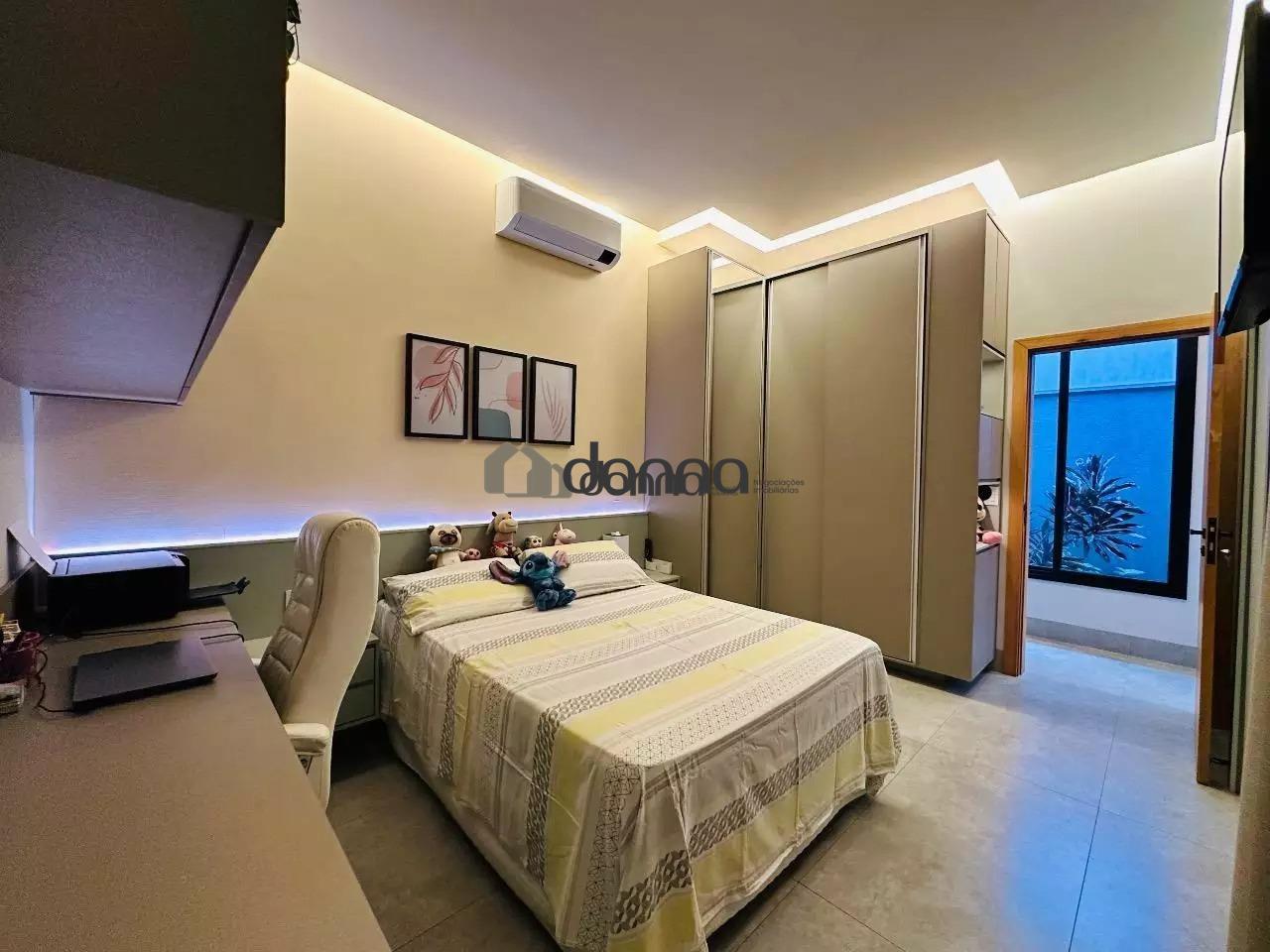 03 suítes, sendo uma máster com 02 closets e ar condicionado na 03 suítes, banheiro social em fino acabamento, Lavabo, sala para 02 ambientes com pé direito duplo, cozinha com planejados, lavanderia com planejado, área gourmet integra com churrasqueira e som ambiente iluminação em led e cortina automatizada, Piscina aquecida com deck e boiler de madeira, estendal nos fundos da casa, armário em metal para depósito no corredor lateral, garagem para 02 veículos na área coberta e 02 veículos na área descoberta. Localização bem localizada no condomínio.