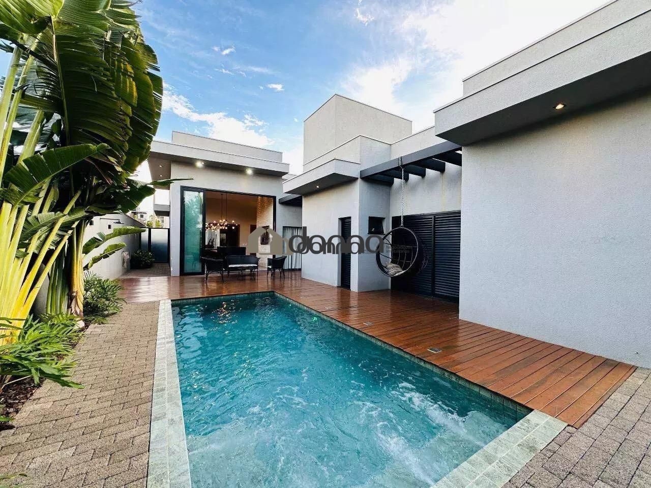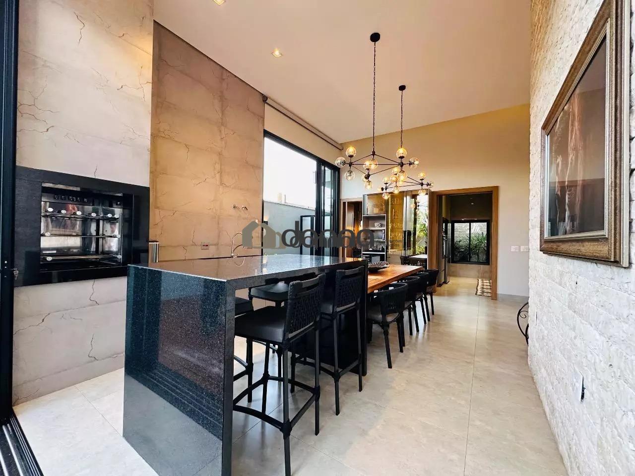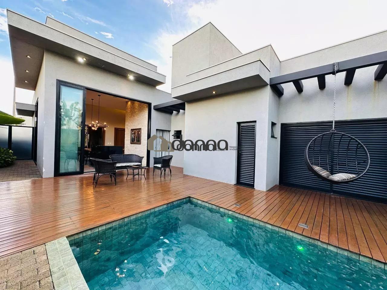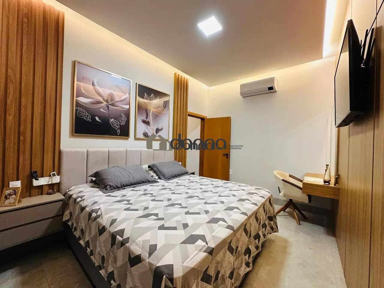 03 suítes, sendo uma máster com 02 closets e ar condicionado na 03 suítes, banheiro social em fino acabamento, Lavabo, sala para 02 ambientes com pé direito duplo, cozinha com planejados, lavanderia com planejado, área gourmet integra com churrasqueira e som ambiente iluminação em led e cortina automatizada, Piscina aquecida com deck e boiler de madeira, estendal nos fundos da casa, armário em metal para depósito no corredor lateral, garagem para 02 veículos na área coberta e 02 veículos na área descoberta. Localização bem localizada no condomínio.